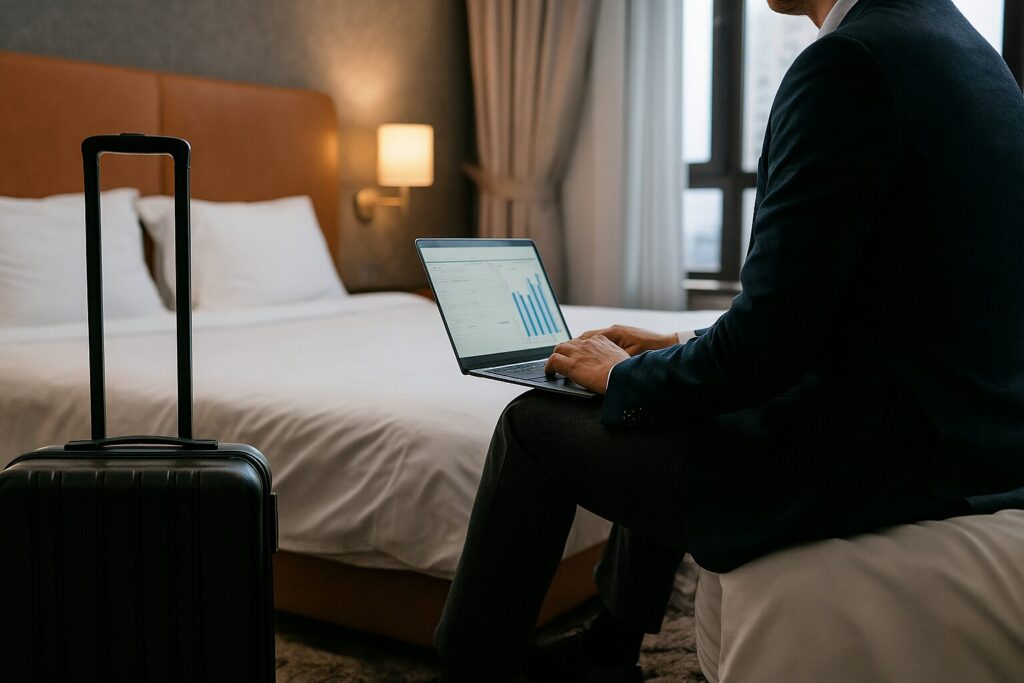 静かな環境で集中できるため、出張中の資料作成や業務整理にも最適です。