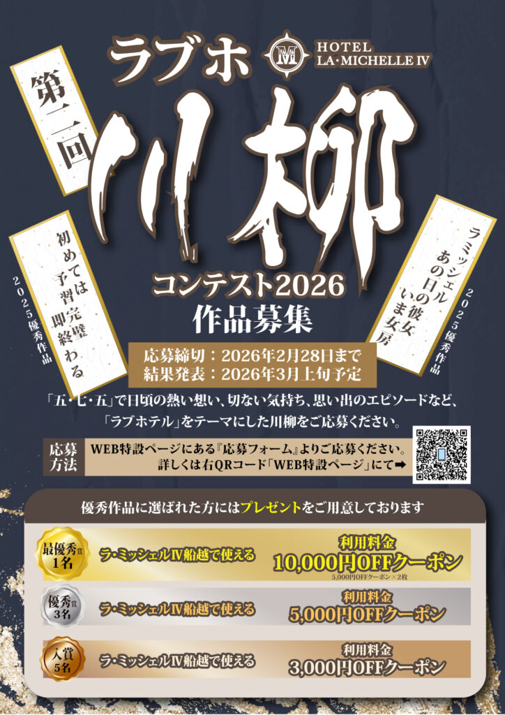 ラ・ミッシェルⅣ船越の「ラブホ川柳コンテスト2025」にご応募いただきありがとうございます。